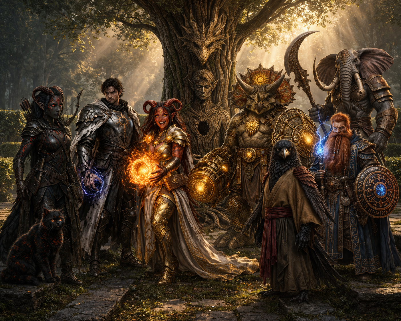 When Sinora called the party together under a lone tree behind the Manticore, Old Man Bryn told them the hardest truth yet: the Oni's mask was not a disguise. It was a divine objectâancient and terribleâand the actual seat of the enemy's power. The revelation changed everything. Then Xerocomath declared the group an obstacle to saving his son. Broj left for Amonkhet. Words grew sharper. Tyel'Koron struck Xerocomath. Xerocomath answered with the most solid and real duplicate of Tyel'Koron the party had ever seen him produceâno longer a bard's flourish but a demonstration of what he stops pretending not to be. The session ended at the boiling point. The fellowship is still standing. Whether it stays that way is the next question.